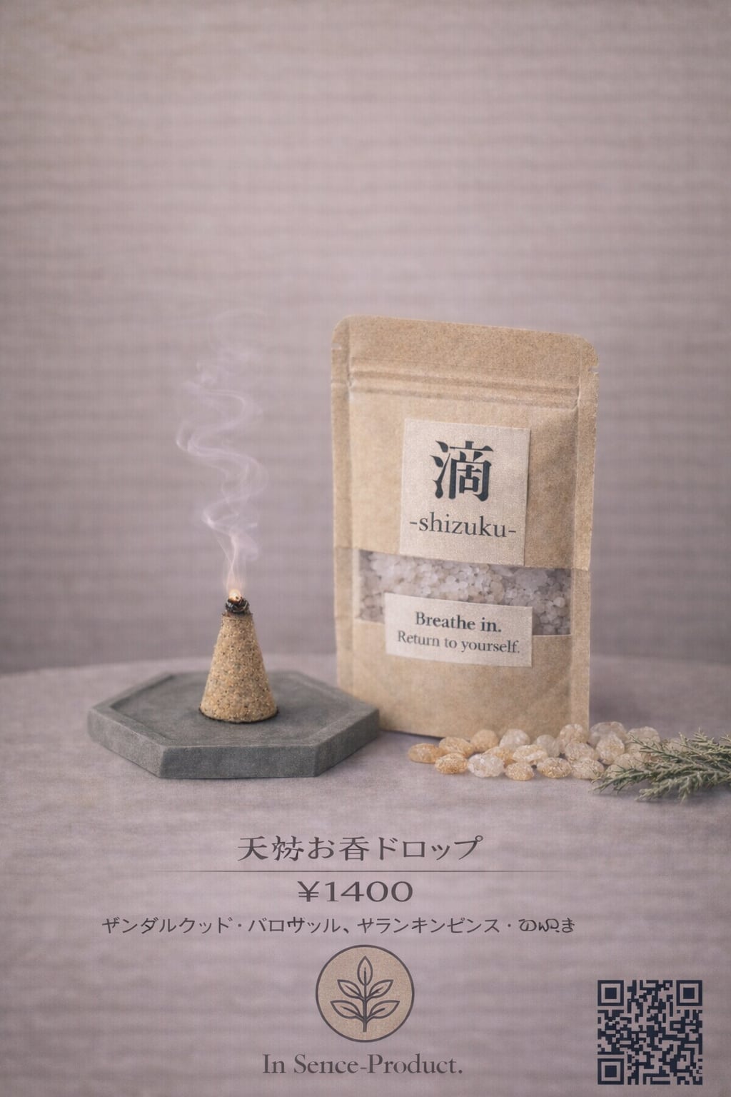 パロサント・サンダルウッド・フランキンセンスの希少香木粉にアロマオイルを練り込んだお香。